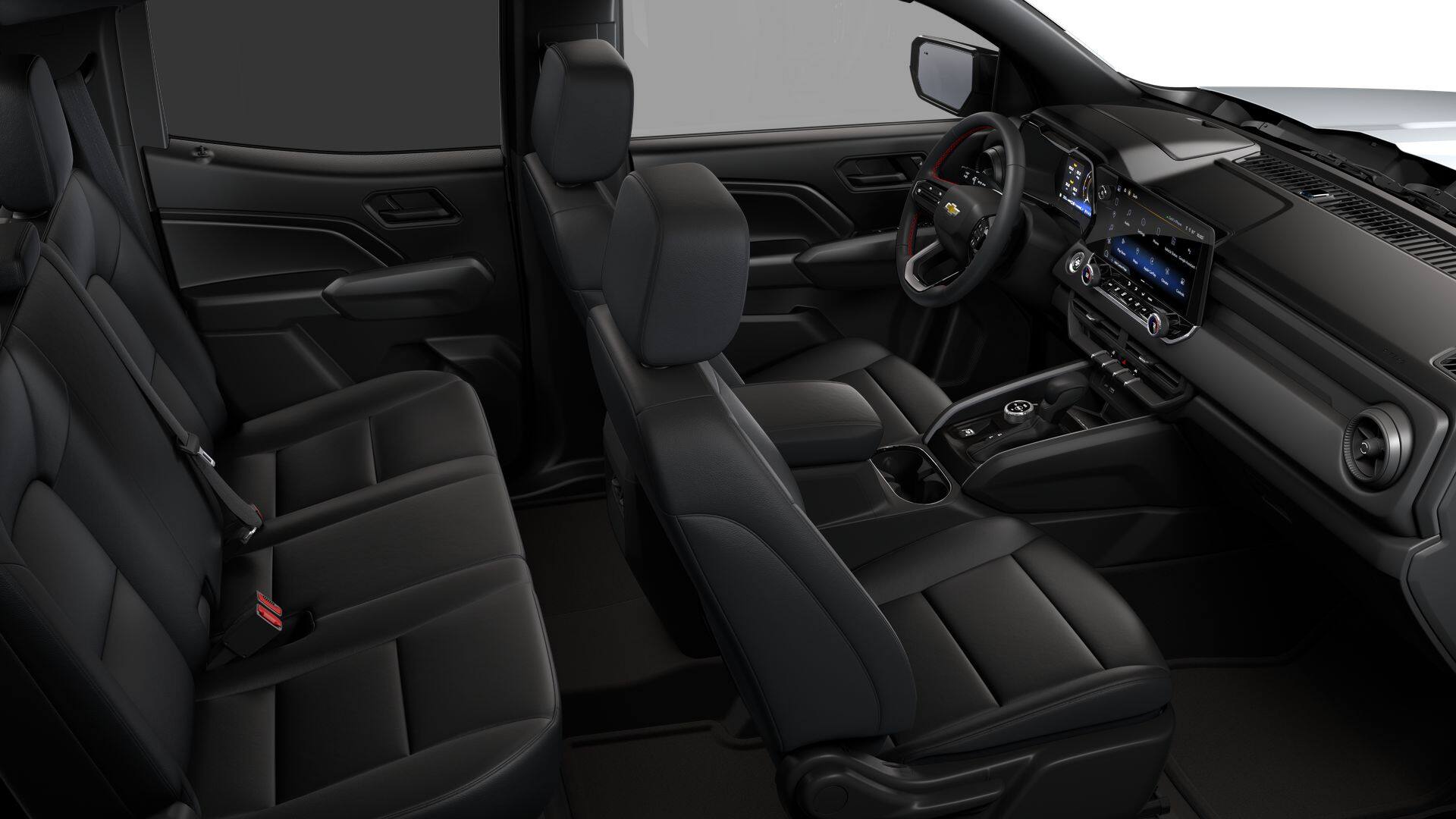Midnight Edition (40 Off-Road Roof Light Bar (LPO), Bed-Mounted Sport Bar w/Sail Panel (LPO), Black Nameplates (LPO), and Wheels: 20 x 9 High Gloss Black Aluminum), Preferred Equipment Group 0TR (Automatic Emergency Braking, Chevy Safety Assist, Following Distance Indicator, Forward Collision Alert, Front Pedestrian & Bicyclist Braking, IntelliBeam Automatic High Beam On/Off, and Lane Keep Assist w/Lane Departure Warning), Technology Package (Adaptive Cruise Control, HD Surround Vision, and Rear Pedestrian Alert), Trail Boss Convenience Package II (4-Spoke Wrapped Steering Wheel, 8-Way Power Driver Seat Adjuster, Evotex Seat Trim, Heated Driver & Front Passenger Seats, Heated Steering Wheel, Power Driver Lumbar Control Seat Adjuster, Remote Vehicle Starter System, and Wireless Phone Charging), 3.42 Rear Axle Ratio, 4-Way Manual Passenger Seat Adjuster, 4-Wheel Disc Brakes, 6 Speakers, 6-Speaker Audio System Feature, 6-Way Manual Driver Seat Adjuster, ABS brakes, Accessory Switch Kit (LPO), Air Conditioning, Alloy wheels, AM/FM radio: SiriusXM, Apple CarPlay/Android Auto, Auto High-beam Headlights, Automatic temperature control, Black Spray-On Bedliner w/Chevrolet Logo, Brake assist, Cloth Seat Trim, Compass, Delay-off headlights, Driver door bin, Driver vanity mirror, Dual front impact airbags, Dual front side impact airbags, Electronic Stability Control, Emergency communication system: OnStar, Front anti-roll bar, Front Bucket Seats, Front Center Armrest, Front dual zone A/C, Front License Plate Kit, Front wheel independent suspension, Heated door mirrors, Illuminated entry, Low tire pressure warning, Navigation System, Occupant sensing airbag, Outside temperature display, Overhead airbag, Overhead console, Panic alarm, Passenger door bin, Passenger vanity mirror, Power Distribution Box (LPO), Power door mirrors, Power steering, Power windows, Radio data system, Radio: 11.3 Diagonal Advanced Color LCD Display, Rear reading lights, Rear step bumper, Rear window defroster, Remote keyless entry, Security system, SiriusXM Trial Subscription, Speed control, Speed-sensing steering, Split folding rear seat, Steering Wheel Mounted Audio Controls, Steering wheel mounted audio controls, Tachometer, Tilt steering wheel, Traction control, Trip computer, Variably intermittent wipers, Wheels: 18 x 8.5 Black High Gloss Aluminum, and Wireless Phone Projection.