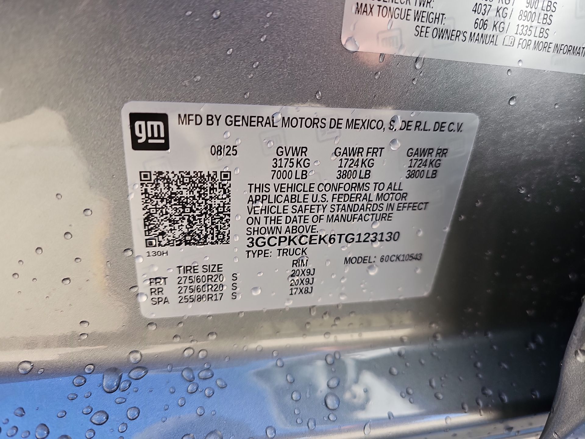 Custom Convenience Package (Electric Rear-Window Defogger, EZ Lift Power Lock & Release Tailgate, LED Cargo Area Lighting, Remote Vehicle Starter System, and Theft Deterrent System (Unauthorized Entry)), Dark Essentials Package (LPO) (Black Name Plates (LPO)), Preferred Equipment Group 2CX (10-Way Power Driver Seat w/Lumbar, 120-Volt Bed Mounted Power Outlet, 120-Volt Interior Power Outlet, 3.5 Monochromatic Display Driver Info Center, Auto-Locking Rear Differential, Bluetooth® For Phone, Color-Keyed Carpeting Floor Covering, Deep-Tinted Glass, Dual Rear USB Ports (Charge Only), Electronic Cruise Control, Front Rubberized Vinyl Floor Mats, HD Rear Vision Camera, Manual Tilt Wheel Steering Column, OnStar Services Capable, Performance Red Recovery Hooks, Power Front Windows w/Driver Express Up/Down, Power Front Windows w/Passenger Express Down, Power Rear Windows w/Express Down, Rear 60/40 Folding Bench Seat (Folds Up), Rear Rubberized-Vinyl Floor Mats, Remote Keyless Entry, SiriusXM Trial Subscription, Standard Tailgate, Teen Driver, Tire Pressure Monitoring System, and Wi-Fi Hot Spot Capable), Suspension Package (Heavy-Duty Air Filter and Hill Descent Control), Trailering Package (Hitch Guidance), 220 Amp Alternator, 3.42 Rear Axle Ratio, 4-Wheel Disc Brakes, 40/20/40 Front Split-Bench Seat, 6 Speakers, 6-Speaker Audio System, ABS brakes, Air Conditioning, Alloy wheels, AM/FM radio: SiriusXM, Apple CarPlay/Android Auto, Auto High-beam Headlights, Automatic Emergency Braking, Brake assist, Chevytec Spray-On Black Bedliner, Cloth Seat Trim, Compass, Delay-off headlights, Driver door bin, Driver vanity mirror, Dual front impact airbags, Dual front side impact airbags, Electronic Stability Control, Emergency communication system: OnStar, Following Distance Indicator, Forward Collision Alert, Front anti-roll bar, Front Center Armrest w/Storage, Front Pedestrian Braking, Front reading lights, Front wheel independent suspension, Fully automatic headlights, Heated door mirrors, Illuminated entry, IntelliBeam Automatic High Beam On/Off, Lane Keep Assist w/Lane Departure Warning, Low tire pressure warning, Multi-Flex Tailgate, Occupant sensing airbag, Outside temperature display, Overhead airbag, Overhead console, Panic alarm, Passenger door bin, Passenger vanity mirror, Power door mirrors, Power driver seat, Power steering, Power windows, Premium audio system: Chevrolet Infotainment 3, Radio data system, Radio: Chevrolet Infotainment 3 System, Rear reading lights, Rear step bumper, Rear Wheelhouse Liners, Rear window defroster, Remote keyless entry, Security system, Single Outlet Exhaust, Speed control, Speed-sensing steering, Split folding rear seat, Tachometer, Tilt steering wheel, Traction control, Trip computer, Variably intermittent wipers, Voltmeter, Wheels: 18 x 8.5 Black Painted Aluminum, and Wheels: 20 x 9 High Gloss Black Painted Alum.