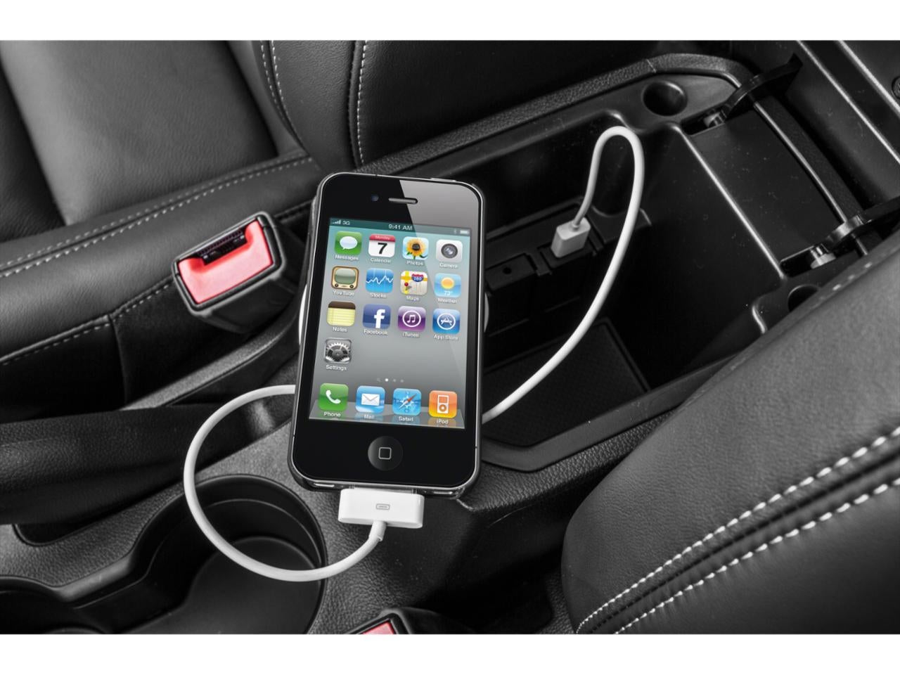 - Audio system feature, auxiliary input jack, located in center console
