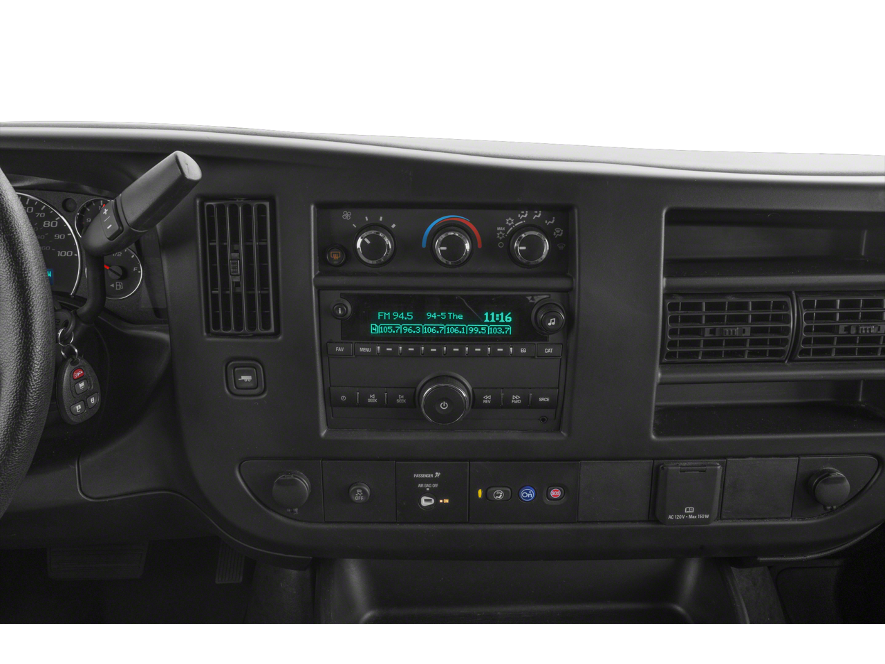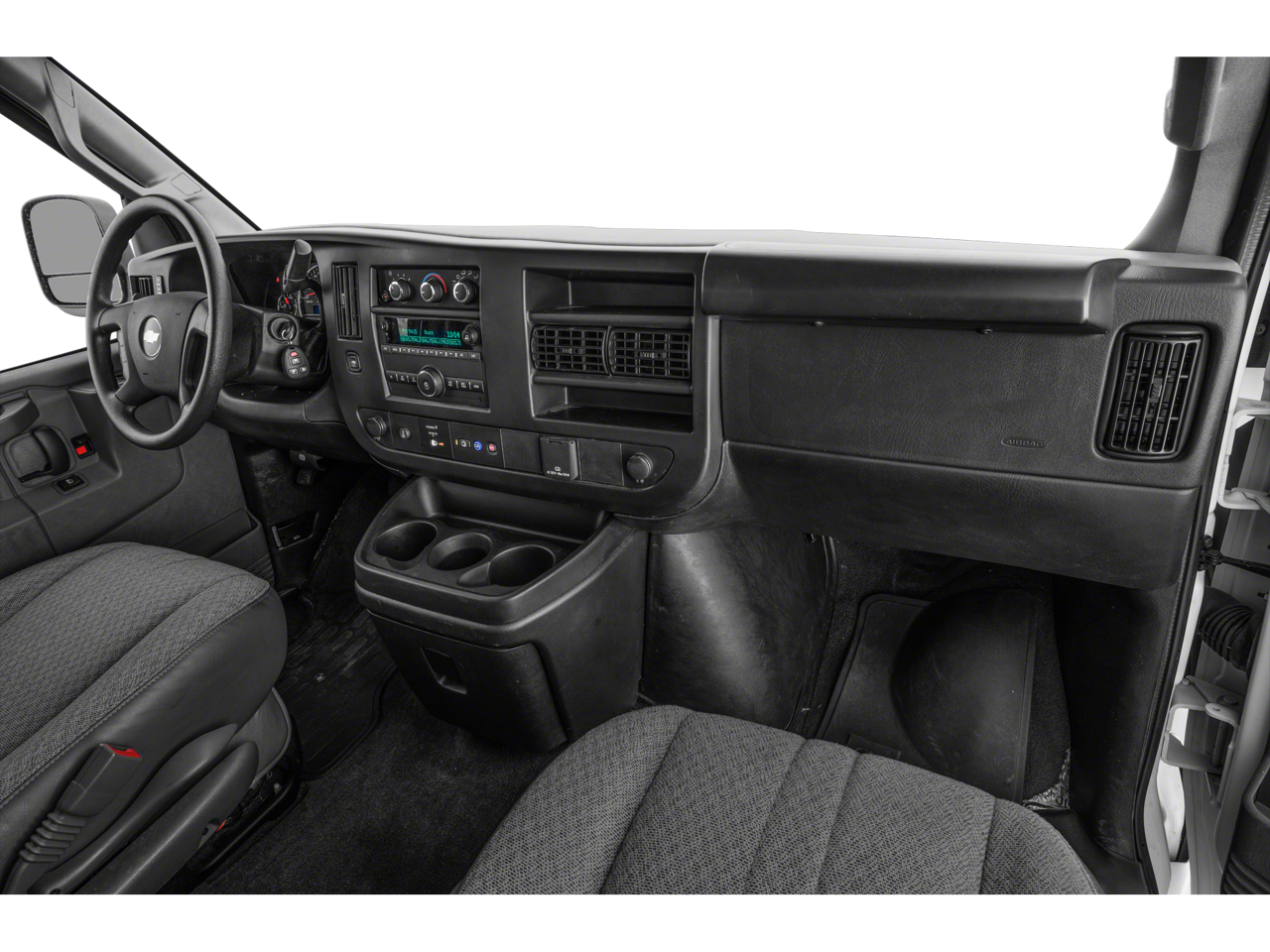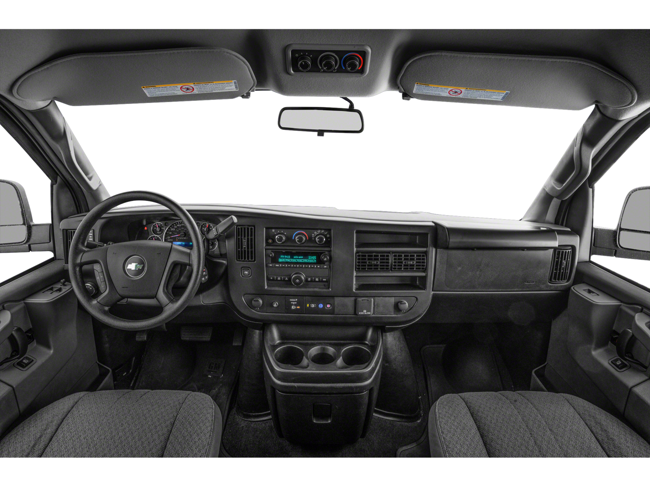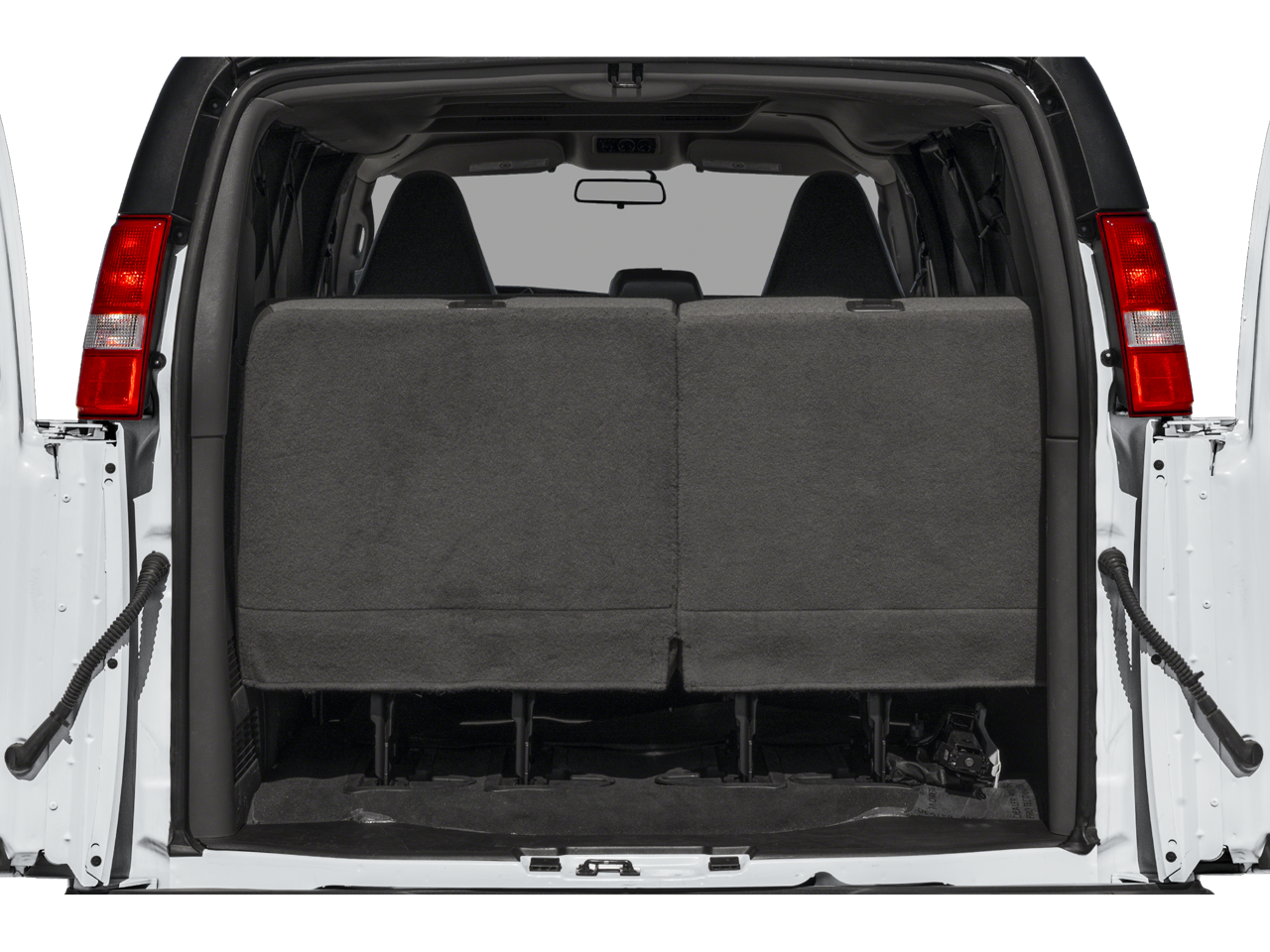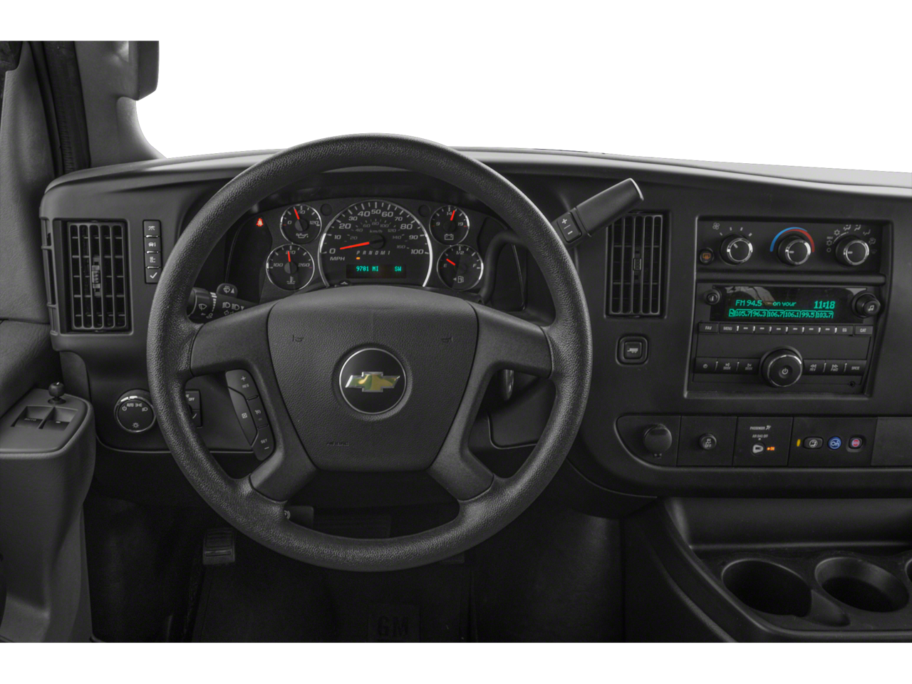 12-Passenger Seating (2-3-3-4 Seating Config), 16 x 6.5 Steel Wheels, 2 Speakers, 3.42 Rear Axle Ratio, 3rd row seats: bench, 4-Wheel Disc Brakes, 4th-Row Bench Seat, ABS brakes, Air Conditioning, AM/FM radio, AM/FM Stereo w/MP3 Player, Bluetooth® For Phone, Compass, Custom Vinyl Seat Trim, Delay-off headlights, Driver door bin, Driver vanity mirror, Driver's Seat Mounted Armrest, Dual front impact airbags, Dual front side impact airbags, Electronic Stability Control, Emergency communication system: OnStar and Chevrolet connected services capable, Front anti-roll bar, Front Bucket Seats, Front reading lights, Front Reclining High-Back Bucket Seats, Front wheel independent suspension, Fully automatic headlights, Heated door mirrors, Leather-Wrapped Steering Wheel, Low tire pressure warning, Occupant sensing airbag, Overhead airbag, Passenger cancellable airbag, Passenger door bin, Passenger seat mounted armrest, Passenger vanity mirror, Power door mirrors, Power steering, Power windows, Preferred Equipment Group 1LS, Radio: AM/FM Stereo w/MP3 Player/Seek & Scan, Rear air conditioning, Rear Park Assist, Rear reading lights, Side Blind Zone Alert, SiriusXM Radio, Sliding Passenger-Side Door, Speed control, Steering Wheel Mounted Audio Controls, Tachometer, Tilt steering wheel, Traction control, Trip computer, USB Port, Variably intermittent wipers, Voltmeter.