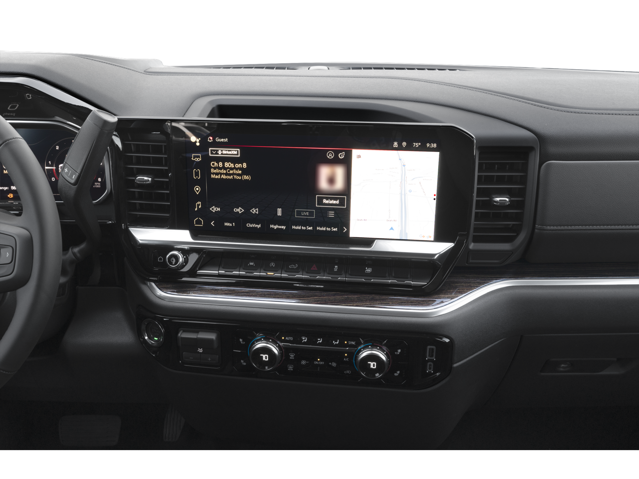 10-Way Power Driver Seat Adjuster w/Lumbar, 10-Way Power Passenger Seat Adjuster w/Lumbar, 120-Volt Bed Mounted Power Outlet, 120-Volt Interior Power Outlet, 170 Amp Alternator, 2 Charge/Data USB Ports, 2 Type-C Charge-Only Rear USB Ports, 3.23 Rear Axle Ratio, 4-Wheel Disc Brakes, 6 Speakers, 6-Speaker Audio System Feature, ABS brakes, Air Conditioning, Alloy wheels, AM/FM radio: SiriusXM with 360L, Apple CarPlay/Android Auto, Auto High-beam Headlights, Auto-dimming door mirrors, Auto-dimming Rear-View mirror, Auto-Locking Rear Differential, Automatic Emergency Braking, Automatic temperature control, Auxiliary External Transmission Oil Cooler, Brake assist, Buckle to Drive, Bumpers: chrome, Chrome Header & Chrome Grille Insert Bars, Color-Keyed Carpeting Floor Covering, Compass, Deep-Tinted Glass, Delay-off headlights, Driver door bin, Driver Memory, Driver vanity mirror, Dual front impact airbags, Dual front side impact airbags, Electric Rear-Window Defogger, Electronic Stability Control, Emergency communication system: OnStar, Following Distance Indicator, Forward Collision Alert, Front 40/20/40 Split-Bench Seat, Front anti-roll bar, Front Center Armrest w/Storage, Front dual zone A/C, Front fog lights, Front Frame-Mounted Black Recovery Hooks, Front Pedestrian Braking, Front Rain-Sensing Wipers, Front reading lights, Front wheel independent suspension, Fully automatic headlights, HD Rear Vision Camera, Heated door mirrors, Heated Driver & Front Outboard Passenger Seating, Heated front seats, Heated steering wheel, Hitch Guidance, Illuminated entry, Integrated Trailer Brake Controller, IntelliBeam Automatic High Beam On/Off, Keyless Open & Start, Lane Keep Assist w/Lane Departure Warning, LED Cargo Area Lighting, Low tire pressure warning, Manual Tilt-Wheel & Telescoping Steering Column, Memory seat, Navigation System, Occupant sensing airbag, OnStar Services Capable, Outside temperature display, Overhead airbag, Overhead console, Panic alarm, Passenger door bin, Passenger vanity mirror, Perf Leather-Appointed Front Outboard Seat Trim, Perimeter Lighting, Power Door Locks, Power door mirrors, Power driver seat, Power Front Passenger Windows w/Express Up/Down, Power Front Windows w/Driver Express Up/Down, Power passenger seat, Power Rear Windows w/Express Down, Power steering, Power windows, Preferred Equipment Group 4SA, Push Button Start, Radio data system, Radio: Premium GMC Infotainment Audio System, Rain sensing wipers, Rear reading lights, Rear seat center armrest, Rear step bumper, Rear Wheelhouse Liners, Rear window defroster, Remote keyless entry, Remote Vehicle Starter System, Security system, SiriusXM w/360L Trial Subscription, Speed control, Speed-sensing steering, Split folding rear seat, Standard Suspension Package, Steering Wheel Audio Controls, Steering wheel mounted audio controls, Tachometer, Telescoping steering wheel, Theft Deterrent System (Unauthorized Entry), Tilt steering wheel, Traction control, Trailering Package, Trip computer, Variably intermittent wipers, Voltmeter, Wheels: 18 x 8.5 6-Spoke Machined Aluminum, Wi-Fi Hotspot Capable, Wireless Apple CarPlay/Wireless Android Auto.