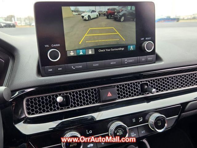 4-Wheel Disc Brakes, 8 Speakers, ABS brakes, Adaptive Cruise Control: Adaptive Cruise Control (ACC) with Low-Speed Follow, Air Conditioning, Alloy wheels, AM/FM radio, Apple CarPlay/Android Auto, Auto High-beam Headlights, Automatic temperature control, Blind Spot Information (BSI) System warning, Brake assist, Bumpers: body-color, Cloth/Leatherette Seating Surfaces, Delay-off headlights, Driver door bin, Driver vanity mirror, Dual front impact airbags, Dual front side impact airbags, Electronic Stability Control, Emergency communication system: HondaLink, Exterior Parking Camera Rear, Four wheel independent suspension, Front anti-roll bar, Front Bucket Seats, Front Center Armrest, Front reading lights, Fully automatic headlights, Heated door mirrors, Illuminated entry, Knee airbag, Leather Shift Knob, Leather steering wheel, Low tire pressure warning, Occupant sensing airbag, Outside temperature display, Overhead airbag, Panic alarm, Passenger door bin, Passenger vanity mirror, Power door mirrors, Power steering, Power windows, Radio data system, Radio: 180-Watt Audio System, Rear anti-roll bar, Rear seat center armrest, Rear side impact airbag, Rear window defroster, Remote keyless entry, Security system, Speed control, Speed-sensing steering, Split folding rear seat, Steering wheel mounted audio controls, Tachometer, Telescoping steering wheel, Tilt steering wheel, Traction control, Trip computer, and Wheels: 18" Gloss Black Alloy.