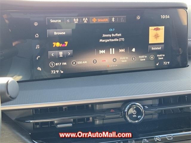 20" Alloy Wheels, 4-Wheel Disc Brakes, 6 Speakers, ABS brakes, Air Conditioning, Alloy wheels, Auto High-beam Headlights, Automatic temperature control, Brake assist, Bumpers: body-color, Carpeted Floor & Cargo Mats, Child-Seat-Sensing Airbag, Compass, Delay-off headlights, Driver door bin, Driver vanity mirror, Dual front impact airbags, Dual front side impact airbags, Electronic Stability Control, Four wheel independent suspension, Front anti-roll bar, Front Bucket Seats, Front Center Armrest, Front dual zone A/C, Front reading lights, Fully automatic headlights, Grained Splash Guards, Heated door mirrors, Heated Front Bucket Seats, Heated front seats, Illuminated entry, Knee airbag, Low tire pressure warning, Occupant sensing airbag, Outside temperature display, Overhead airbag, Overhead console, Panic alarm, Passenger door bin, Passenger vanity mirror, Power door mirrors, Power driver seat, Power Liftgate, Power passenger seat, Power steering, Power windows, PVC (Leatherette) Seat Trim, Radio data system, Radio: NissanConnect, Rear anti-roll bar, Rear reading lights, Rear seat center armrest, Rear side impact airbag, Rear window defroster, Rear window wiper, Remote keyless entry, Security system, SiriusXM, Speed control, Speed-Sensitive Wipers, Split folding rear seat, Spoiler, Steering wheel mounted audio controls, Tachometer, Telescoping steering wheel, Tilt steering wheel, Traction control, Trip computer, USB Charging Cables, Variably intermittent wipers, and Wireless Apple CarPlay/Wireless Android Auto.