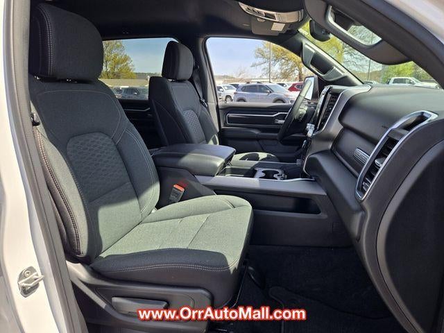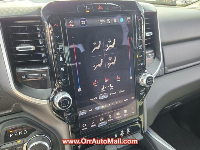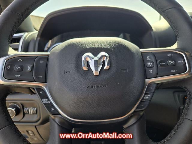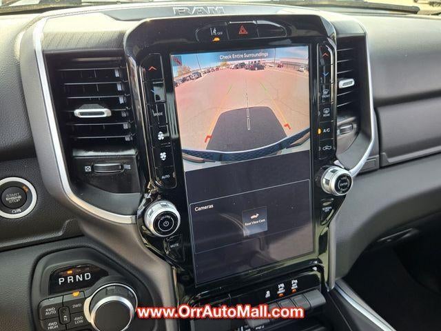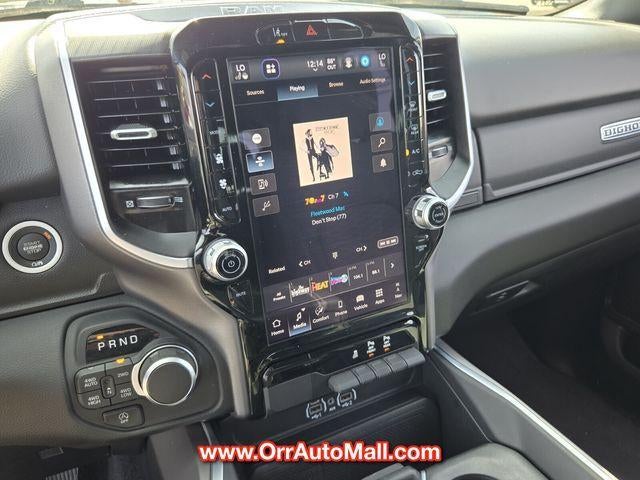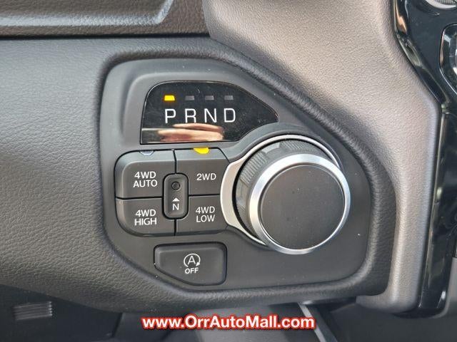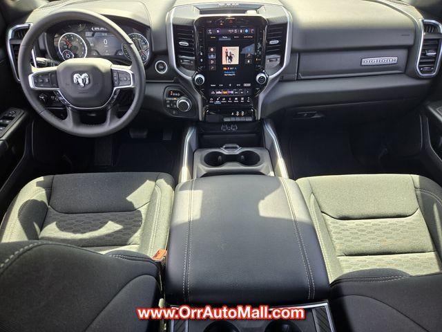 Bed Utility Group (Exterior 115V AC Outlet, MOPAR 4 Adjustable Cargo Tie-Down Hooks, MOPAR Spray In Bedliner, and Pick-Up Box Lighting), Big Horn Level 2 Equipment Group (115V Auxiliary Power Outlet, 115V Auxiliary Rear Power Outlet, 12" Touchscreen Display, 2nd Row In Floor Storage Bins, 400W Inverter, 4G LTE Wi-Fi Hot Spot, 9 Amplified Speakers w/Subwoofer, Air Conditioning ATC w/Dual Zone Control, Apple CarPlay, Auto Power-Folding Mirrors, Auto-Dimming Exterior Driver Mirror, Auto-Dimming Rear-View Mirror, Black Exterior Mirrors, Black Premium Power Mirrors, Cluster 7.0" TFT Color Display, Configurable Drive Mode, Connected Travel & Traffic Services, Connectivity - US/Canada, Convex Wide-Angle Exterior Mirror Insert, Exterior Mirrors Courtesy Lamps, Exterior Mirrors w/Heating Element, Exterior Mirrors w/Supplemental Signals, Glove Box Lamp, Google Android Auto, GPS Antenna Input, GPS Navigation, HD Radio, Heated Front Seats, Heated Steering Wheel, Integrated Voice Command w/Bluetooth®, Leather Wrapped Steering Wheel, LED Dome Lamp w/On/Off Switch, LED Footwell Lighting, Media Hub w/2 Charge Only USBs, Overhead LED Lamps, Power 2-Way Driver Lumbar Adjust, Power Adjust 8-Way Driver Seat, Power Adjustable Pedals, Premium Overhead Console, Radio: Uconnect 5 Nav w/12.0" Display, Rear Power Sliding Window, Rear Window Defroster, Remote Tailgate Release, Security Alarm, SiriusXM w/360L, Steering Wheel Mounted Audio Controls, Sun Visors w/Illuminated Vanity Mirrors, Universal Garage Door Opener, and USB Host Flip), Night Edition (3 Rear Seat Head Restraints, 4 Way Front Headrests, Accent Color Door Handles, Accent Color Premium Power Mirrors, Accent Color Tailgate Handle, Anti-Spin Differential Rear Axle, Black Exterior Truck Badging, Black Headlamp Bezels, Black Interior Accents, Black Painted Exterior Mirrors Caps, Black Tail Lamp Bezels, Body Color Front Bumper, Body Color Rear Bumper w/Step Pads, Bucket Seats, Deluxe Cloth Bucket Seats, Front Seat Back Map Pockets, Full Length Floor Console, Grille Black Surround Black Mesh, Manual Adjust 4-Way Front Passenger Seat, RAM Grille Badge - Black, Rear 60/40 Folding Seat, Rear Center Armrest, and Wheels: 20" x 9.0" Aluminum Painted Clad), Quick Order Package 23Z Big Horn (Big Horn Badge), 3.21 Rear Axle Ratio, 4-Wheel Disc Brakes, 6 Speakers, ABS brakes, Air Conditioning, Alloy wheels, AM/FM radio, Apple CarPlay/Android Auto, Auto High-beam Headlights, Brake assist, Bumpers: chrome, Cloth Bench Seat, Compass, Delay-off headlights, Driver door bin, Dual front impact airbags, Dual front side impact airbags, Electronic Stability Control, Front anti-roll bar, Front Center Armrest w/Storage, Front fog lights, Front License Plate Bracket, Front reading lights, Front wheel independent suspension, Fully automatic headlights, Heated door mirrors, Illuminated entry, Low tire pressure warning, Manual Folding Exterior Mirrors, Manufacturer's Statement of Origin, Occupant sensing airbag, Outside temperature display, Overhead airbag, Overhead console, Panic alarm, ParkView Rear Back-Up Camera, Passenger door bin, Passenger vanity mirror, Power door mirrors, Power steering, Power windows, Radio data system, Radio: Uconnect 5 W w/8.4" Display, RAM Grille Badge - Chrome, Rear anti-roll bar, Rear seat center armrest, Rear step bumper, Remote keyless entry, Speed control, Split folding rear seat, Supplier Part Tracking (J-1), Tachometer, Telescoping steering wheel, Tilt steering wheel, Traction control, Trip computer, Variably intermittent wipers, Voltmeter, and Wheels: 18" x 8" Cast-Aluminum Painted.