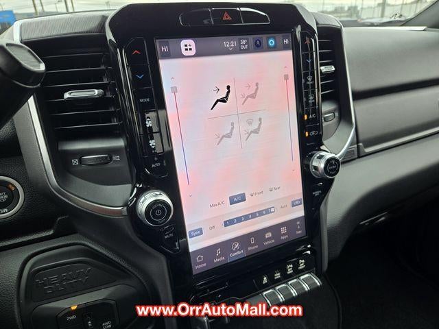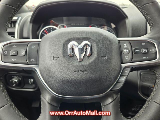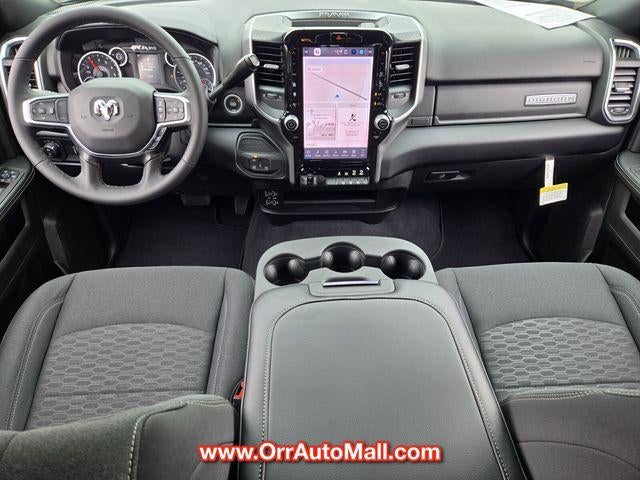 Big Horn Level 1 Plus Equipment Group (12" Touchscreen Display, 2 Way Rear Headrest Seat, 2nd Row In Floor Storage Bins, 4 Way Front Headrests, 40/20/40 Split Bench Seat, 4G LTE Wi-Fi Hot Spot, 9 Alpine Speakers w/Subwoofer, Air Conditioning ATC w/Dual Zone Control, Alexa Built-In, Anti-Spin Differential Rear Axle, Apple CarPlay, Auto Power-Folding Mirrors, Auto-Dimming Rear-View Mirror, Black Exterior Mirrors, Connected Travel & Traffic Services, Connectivity - US/Canada, Dual Glove Boxes, Emergency Vehicle Alert System (EVAS), Exterior Mirrors Courtesy Lamps, Exterior Mirrors w/Heating Element, Exterior Mirrors w/Supplemental Signals, Foam Bottle Insert (Door Trim Panel), Folding Flat Load Floor Storage, Footwell Courtesy Lamp, Forward & Reverse Utility Lights, Front Armrest w/Cupholders, Front Center Seat Cushion Storage, Front Seat Back Map Pockets, Global Telematics Box Module (TBM), Glove Box Lamp, Google Android Auto, GPS Antenna Input, GPS Navigation, HD Radio, Integrated Voice Command w/Bluetooth®, LED Bed Lighting, Locking Lower Glove Box, Luxury Steering Wheel, Manual Adjust 4-Way Front Passenger Seat, Mirror Running Lights, MOPAR Deployable Bed Step, MOPAR Spray In Bedliner, Off-Road Info Pages, Power 2-Way Driver Lumbar Adjust, Power Adjust 8-Way Driver Seat, Power Adjust Mirrors, Power Adjustable Convex Aux Mirrors, Power Heated Folding Telescopic Mirrors, Power Telescoping Mirrors, Premium Cloth 40/20/40 Bench Seat, Radio: Uconnect 5 Nav w/12.0" Display, Rear 60/40 Folding Seat, Rear Dome w/On/Off Switch Lamp, Remote Start System, Remote USB Port - Charge Only, Selectable Tire Fill Alert, SiriusXM Radio Service, SiriusXM w/360L, Steering Wheel Mounted Audio Controls, Storage Tray, and Trailer Tow Pages), Quick Order Package 2UZ Big Horn, 3.73 Axle Ratio, 4-Wheel Disc Brakes, 6 Speakers, ABS brakes, Air Conditioning, Alloy wheels, Apple CarPlay/Android Auto, Brake assist, Bumpers: chrome, Chrome Flat Wheel-to-Wheel Side Steps, Cloth 40/20/40 Bench Seat, Compass, Delay-off headlights, Delete Deployable Bed Step (DISC), Driver door bin, Dual front impact airbags, Dual front side impact airbags, Electronic Stability Control, Front anti-roll bar, Front Center Armrest w/Storage, Front fog lights, Front License Plate Bracket, Front reading lights, Fully automatic headlights, Heated door mirrors, Illuminated entry, Low tire pressure warning, Manual Adjust 4-Way Driver Seat, Manufacturer's Statement of Origin, Occupant sensing airbag, Outside temperature display, Overhead airbag, Overhead console, Panic alarm, ParkView Rear Back-Up Camera, Passenger door bin, Passenger vanity mirror, Power door mirrors, Power steering, Power windows, Radio data system, Radio: Uconnect 5 w/8.4" Display, Rear anti-roll bar, Rear Folding Seat, Rear seat center armrest, Rear step bumper, Rear window defroster, Remote keyless entry, Security system, SiriusXM, Speed control, Tachometer, Tilt steering wheel, Traction control, Trip computer, Turn signal indicator mirrors, Variably intermittent wipers, Vinyl 2nd Row Seat, Voltmeter, and Wheels: 18" x 8.0" Polished Aluminum.